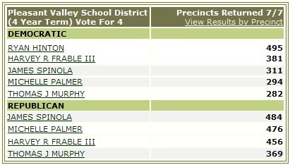 Democrat Mike Carroll beat Tatu 4:1 in Luzerne and even took Monroe by 200 votes in what the Pocono Record characterizes as a "landslide".